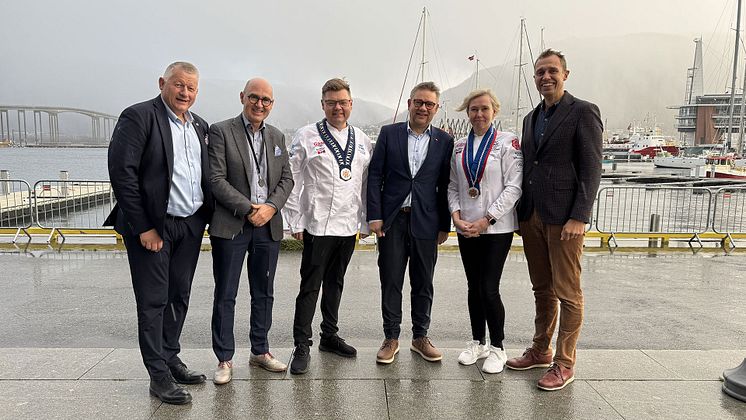 (t.v.) Christian Chramer fra Norges Sjømatråd, Kyrre Dybdal fra NKL Trondheim, Rita slettum Karlsen fra NKL Oslo, Jonny Berfjord fra Norges Sildesalgslag, Svein Ove Haugland fra Norges Råfisklag og Espen A. Wasenius fra NKL.