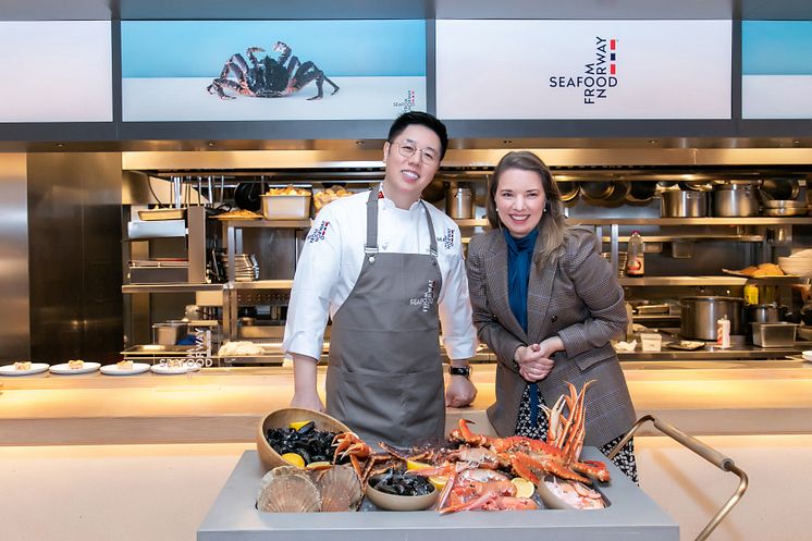 Sjømatrådets utsending i Kina, Victoria Braathen og mesterkokk Alan Yu