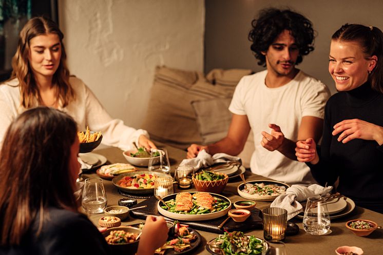 Venner som spiser sjømat