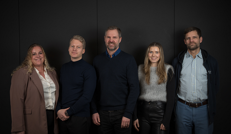 Fra venstre: Martine Meland (trainee),Peter Kristoffer Alexandersen (rådgiver),Børge Lotre (fungerende direktør markedsinnsikt og markedsadgang), Marte Sofie Danielsen (prosjektmedarbeider), Øytein Valanes (fagansvarlig)