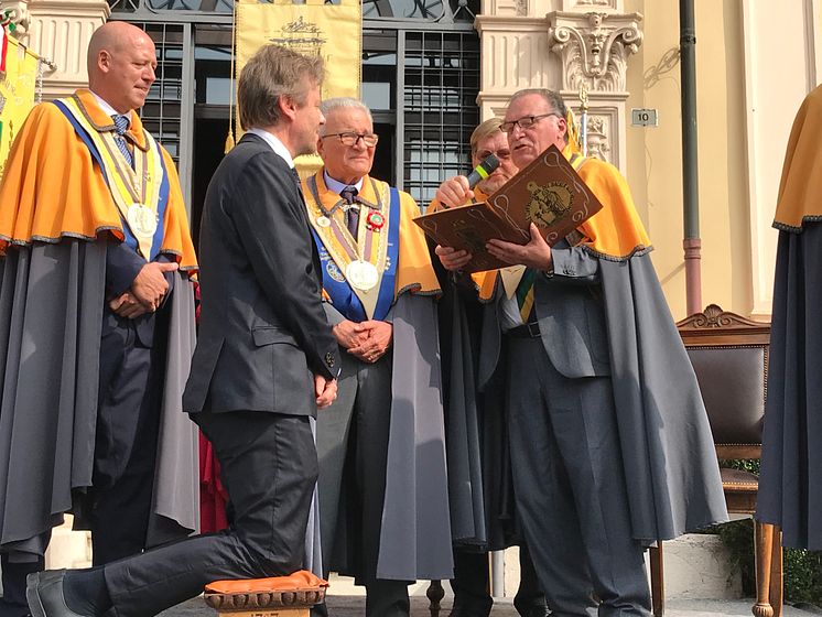 Sjømatrådets fiskeriutsending i Italia, Trym Eidem Gundersen, ble kåret til tørrfiskridder under Sandrigo-festivalen