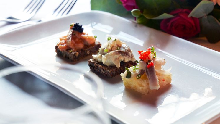 - Søt eplesild, salt rømmesild og sur tomatsild