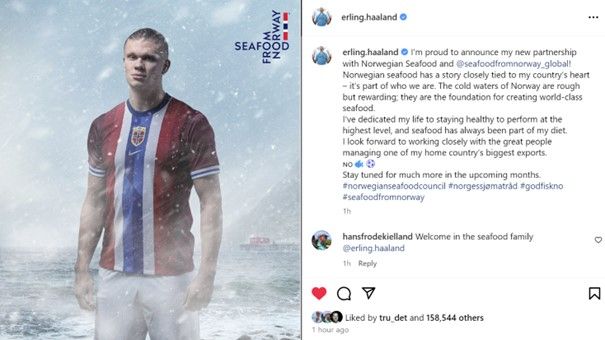 Haaland deler nyheten om sjømatsamarbeid på Instagram