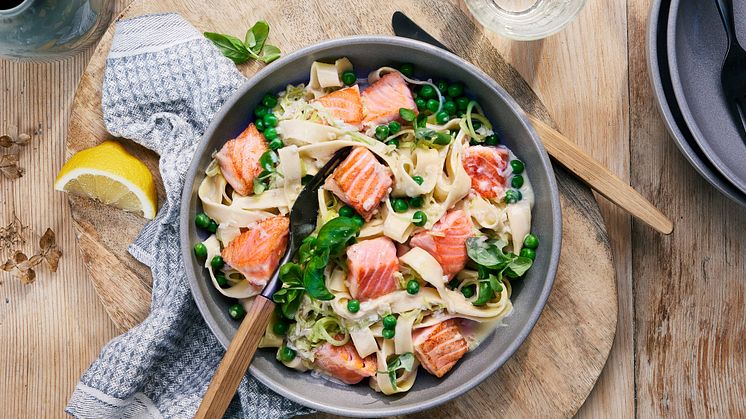 Hun forteller at oppskriften kremet tagliatelle med laks er den mest populære på godfisk.no akkurat nå, og det viser at nordmenn er positive til å bli inspirert.